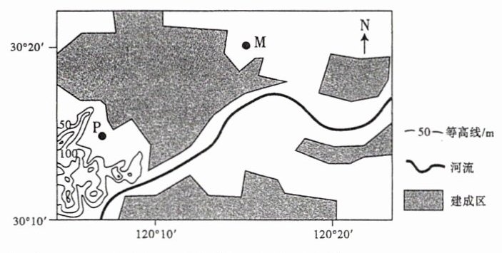 8.白天,与M地相比,P地的局地风大小及原因是 ( )