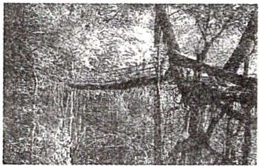 (2024·湖南衡阳市期末)有“雨极”之称的乞拉朋齐,当地人将槟榔树干挖成中空,横跨在河流上方,再由人工引导印度榕的次生根往槟榔树干里生长。当次生根不断生长,遇到河对岸的土壤就会扎根,一座桥就逐渐“种”出来了(如图)。完成3~4题。