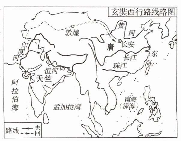 3.【跨学科融合题】《西游记》讲的是唐僧师徒去西天取经的神话故事。历史上,唐代高僧玄奘于公元627年从长安出发,经过4年的长途跋涉到达天竺,研习佛法。10多年后,玄奘携带大量佛经回到长安。读玄奘西行路线略图,玄奘取经的“西天”天竺所处的亚洲地理分区是( )