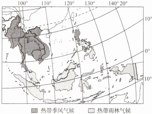 2024年元旦前后,上海的一个经贸代表团赴东南亚采购货物,并开展观光考察。右图为东南亚气候类型图。据此完成7~9题。