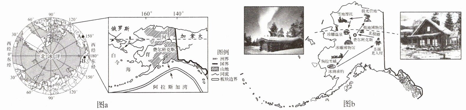 (1)费尔班克斯位于图a中的A点,其经纬度大致是______。