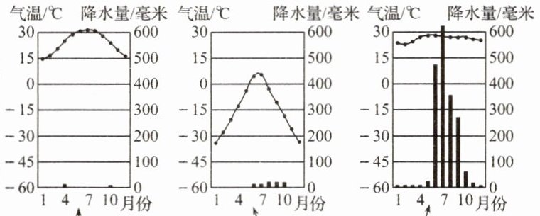 (5)丁 丙 全年高温,分旱、雨两季 降水丰沛