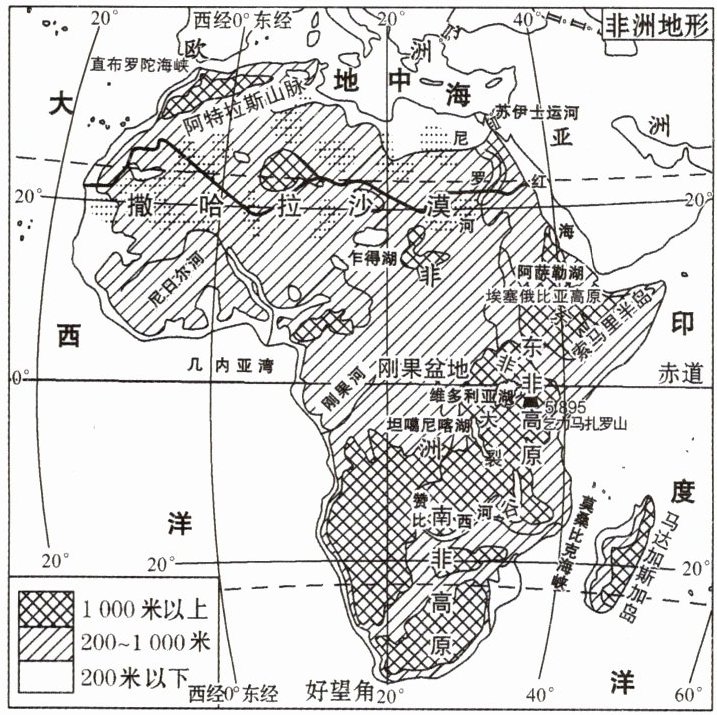 非洲有“高原大陆”之称,结合图中信息分析原因。