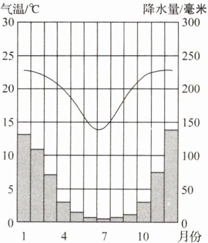 (2024·河北学业考)津巴布韦位于非洲南部,长期以来一直依赖传统化石燃料发电,能源成本高昂且电力供应不稳定。中国某企业助力津巴布韦发展光伏(太阳能)发电,并协助该国在马斯温戈省建设了一个“光伏+储能+柴油发电站”的能源系统。如图示意马斯温戈多年平均各月气温曲线与降水量柱状图。据此完成1~2题。