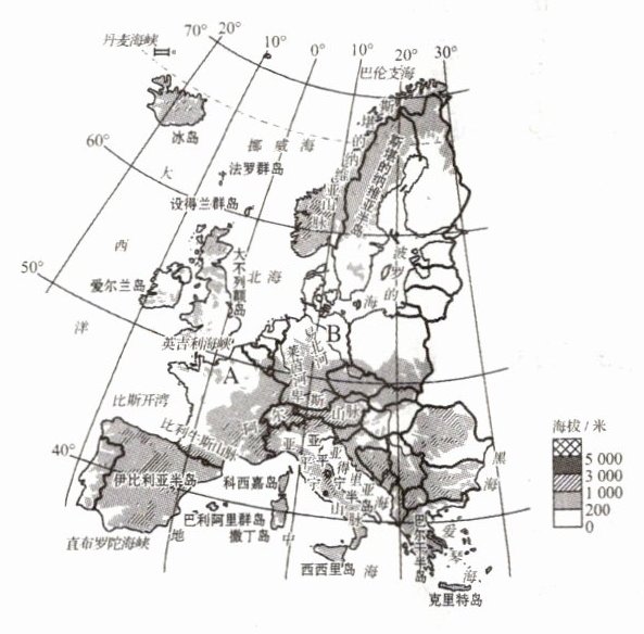 (2)山脉:北部为斯堪的纳维亚山脉,山脉西部沿岸陡峭,多岛屿和峡湾;南部为____________山脉,山脉雄伟高大,主峰勃朗峰上终年积雪。