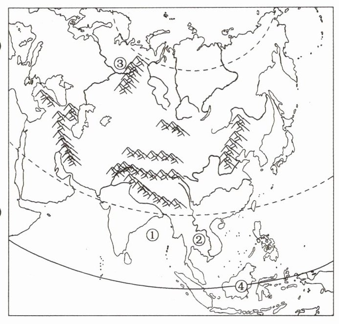 读亚洲简图,完成5~6题。