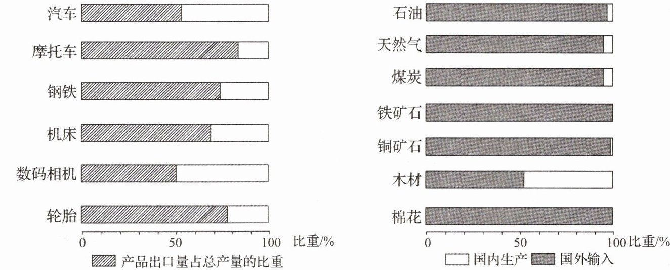 (4)“日本制造”享誉全球,日本工业产品质量好,但主要依赖__________(填“国内”或“国际”)市场,工业产品中出口量占总产量的比重最大的是__________。日本工业生产所需的原料、燃料严重依赖__________。从经济发展水平看,日本属于__________国家。