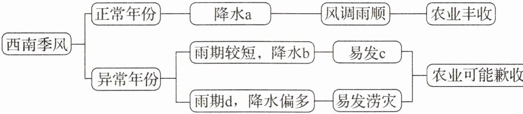 6.西南季风决定着南亚农业的丰歉,下图中a、b、c、d对应的内容分别是( )