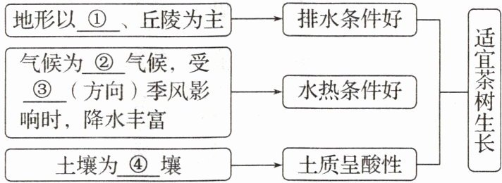 (2)根据图文材料,探究斯里兰卡中南部地区种植红茶的有利自然条件,并补全框图。