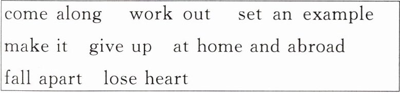 come along work out set an example make it give up at home and abroad fall apart lose heart