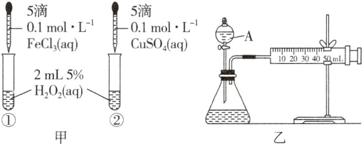 2.为比较$Fe^{3+}$和$Cu^{2+}$对$H_{2}O_{2}$分解反应的催化效果,甲、乙两位同学分别设计了如图甲、乙所示的实验。下列叙述中不正确的是 ( )