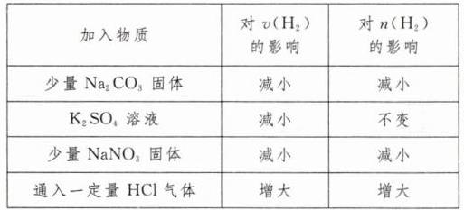 12.100 mL 6 mol·L⁻¹ H₂SO₄溶液与足量的锌粉反应,在一定温度下,加入下列物质,试将对v(H₂)和n(H₂)的影响填入下表中(填“减小”“增大”或“不变”)。