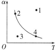 图中标出的1、2、3、4四个点,表示v正>v逆的是点__________,表示v正<v逆的是点________,而点2、4表示v正________v逆。