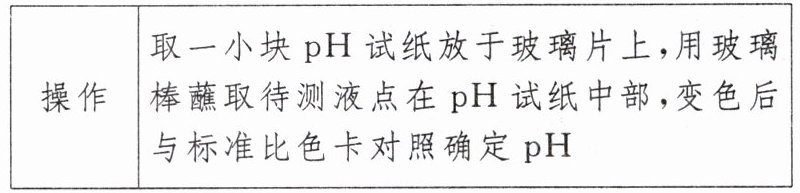 取一小块pH试纸放于玻璃片上,用玻璃棒蘸取待测液点在pH试纸中部,变色后与标准比色卡对照确定pH