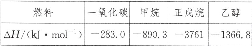 B ΔH是焓变,其值为负值时,反应放热,负号后面的数字越大,放出的热量就越大;负号后面的数字越小,放出的热量就越小,一氧化碳、甲烷、正戊烷、乙醇的相对分子质量分别为28、16、72、46,所以相同质量的这4种燃料的物质的量之比就是$\frac{1}{28}$:$\frac{1}{16}$:$\frac{1}{72}$:$\frac{1}{46}$,燃烧放出热量分别为283.0kJ×$\frac{1}{28}$≈10.1kJ、890.3kJ×$\frac{1}{16}$≈55.64kJ、3761kJ×$\frac{1}{72}$≈52.2kJ、1366.8kJ×$\frac{1}{46}$≈29.7kJ,所以相同质量的一氧化碳、甲烷、正戊烷、乙醇完全燃烧时,放出热量最多的是甲烷。
