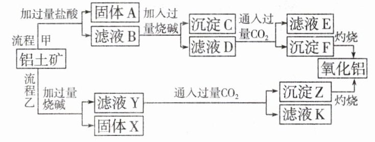 17.从铝土矿(主要成分是Al₂O₃,含SiO₂、Fe₂O₃、MgO等杂质)中提取氧化铝的两种工艺流程如下: