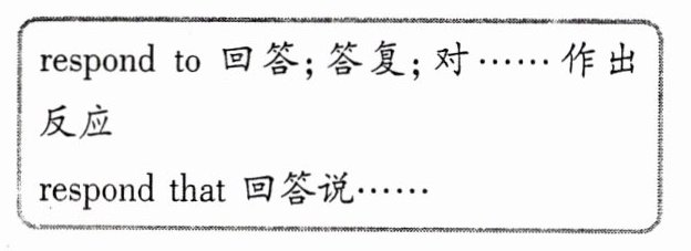 1. in response to回答;答复;对 作出反应(response n.回答;答复;反应respond vi.回答;答复;作出反应)