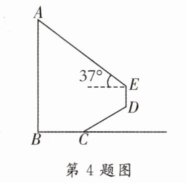 4.[2024·凉州区一模]如图,某数学活动小组为测量学校旗杆AB的高度,从旗杆正前方2$\sqrt{3}$米处的点C出发,沿斜面坡度i = 1:$\sqrt{3}$的斜坡CD前进4米到达点D,在点D处安置测角仪,测得旗杆顶部A的仰角为37°,量得仪器的高DE为1.5米.已知A,B,C,D,E在同一平面内,AB⊥BC,AB//DE.旗杆AB的高度为(参考数据:sin37°≈$\frac{3}{5}$,cos37°≈$\frac{4}{5}$,tan37°≈$\frac{3}{4}$.计算结果保留根号)( )