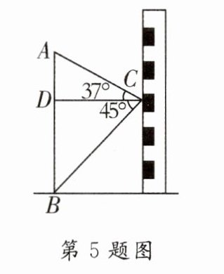 5.如图,小东在教学楼距地面8米高的窗口C处,测得正前方旗杆顶部A点的仰角为37°,旗杆底部B点的俯角为45°,升旗时,国旗上端悬挂在距地面2.5米处,若国旗随国歌声冉冉升起,并在国歌播放46秒结束时到达旗杆顶端,则国旗匀速上升的速度为(参考数据:sin37°≈0.60,cos37°≈0.80,tan37°≈0.75)( )