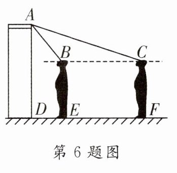 6.[2024·花山区二模]如图,某校为检测师生体温,在校门口安装一台测量体温的红外线测温仪.已知测温仪A距地面2.65 m,为了了解测温仪的有效测温区间,陈师傅做了如下实验:当他走到F处时,测温仪开始显示额头温度,此时在额头C处测得A的仰角为24°;当他走到E处时,测温仪停止显示额头温度,此时在额头B处测得A的仰角为45°.若CF = 1.75 m,则有效测温区间EF的长度为________.(参考数据:sin24°≈0.41,cos24°≈0.91,tan24°≈0.45)