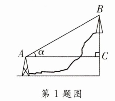 1.[2023·深圳模拟]如图分别是两个高压电塔的位置.已知电塔A,B两点之间的水平距离为80米(AC = 80 m),∠BAC = α,则从电塔A到B海拔上升的高度(BC的长)为( )