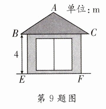 9.[2024·西乡塘区模拟]一配电房示意图如图所示,它是一个轴对称图形,已知BC = 6 m,∠ABC = 37°,则房顶A处离地面高度为_______m.(参考数据:sin37°≈0.6,cos37°≈0.8,tan37°≈0.75)
