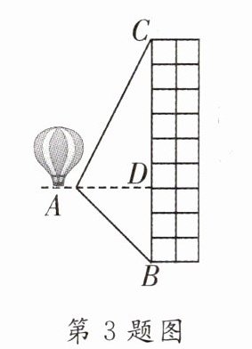 3. [2024·绥化]如图,用热气球的探测器测一栋楼的高度,从热气球上的点A测得该楼顶部点C的仰角为60°,测得底部点B的俯角为45°,点A与楼BC的水平距离AD = 50 m,则这栋楼的高度为__________m.(结果保留根号)