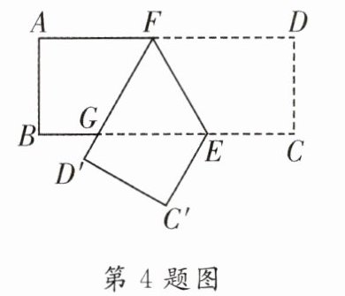 4. [2023·宝鸡三模]如图,已知在矩形ABCD中,点E在边BC上,BE = 2CE,将矩形沿着过点E的直线翻折后,点C,D分别落在边BC下方的点C',D'处,且点C',D',B在同一条直线上,折痕与边AD交于点F,D'F与BE交于点G. 设AB = $\sqrt{3}$,那么△EFG的周长为________.