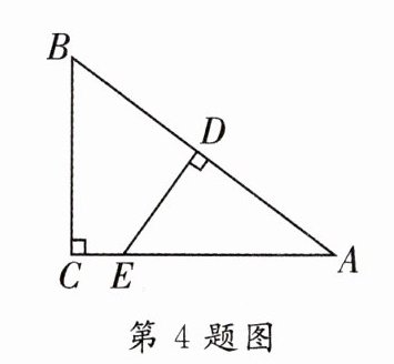 4. [2023·临渭区一模]如图,在Rt△ABC中,∠ACB = 90°,D是AB的中点,过D点作AB的垂线交AC于点E,BC = 6,$\sin A=\frac{3}{5}$,则DE的长为( )