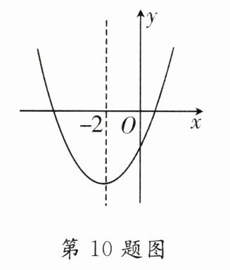 10. [2023·武汉模拟]二次函数$y=ax^{2}+bx + c(a\neq0)$的大致图象如图所示,顶点坐标为$(-2,-9a)$,下列结论:①$abc\lt0$ ②$5a - b + c\lt0$ ③方程$ax^{2}+bx + c = 0$的两根分别为$x_{1}=-5$,$x_{2}=1$ ④若方程$|ax^{2}+bx + c| = 1$有四个根,则这四个根的和为-4. 其中正确的结论有__________.(填序号)