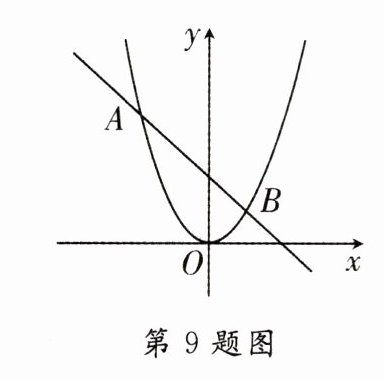 9. 如图,抛物线$y=ax^{2}$与直线$y=bx + c$的两个交点坐标分别为$A(-2,4)$,$B(1,1)$,则关于$x$的方程$ax^{2}-bx - c = 0$的解为______________.