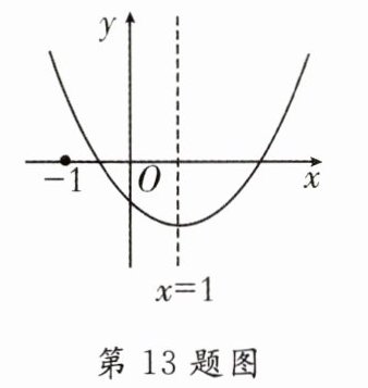13. [2024·威海三模]如图,二次函数$y = ax^{2}+bx + c(a\neq0)$的图象与$x$轴负半轴交于$(-\frac{1}{2},0)$,顶点坐标为$(1,n)$,有以下结论;①$abc<0$ ②$3a + c>0$ ③若点$(-2,y_{1})$,$(0,y_{2})$,$(3,y_{3})$均在函数图象上,则$y_{1}>y_{3}>y_{2}$ ④对于任意$m$都有$a + b\leqslant am^{2}+bm$ ⑤点$M,N$是抛物线与$x$轴的两个交点,若在$x$轴下方的抛物线上存在一点$P$,使得$PM\perp PN$,则$a$的范围为$a\geqslant\frac{2}{3}$.其中结论正确的有( )