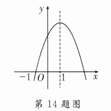 14. [2024·高青县二模]如图,已知开口向下的抛物线$y = ax^{2}+bx + c$与$x$轴交于点$(-1,0)$,对称轴为直线$x = 1$.下列四个结论:①$abc>0$ ②$2a + b = 0$ ③函数$y = ax^{2}+bx + c$的最大值为$-4a$ ④若关于$x$的方程$ax^{2}+bx + c = a + 1$无实数根,则$-\frac{1}{5}<a<0$.其中正确的是______(填序号).
