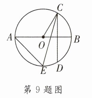 9. 如图,AB是⊙O直径,弦CD垂直平分OB,点E在弧AD上(点E和点A不重合),连接CE,AE,则∠AEC = ______°.