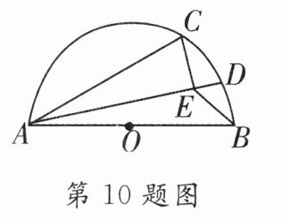 10. 如图,AB是半圆O的直径,点C在半圆上,AB = 5,AC = 4,D是弧BC上的一个动点,连接AD. 过点C作CE⊥AD于点E,连接BE,则BE的最小值是______.