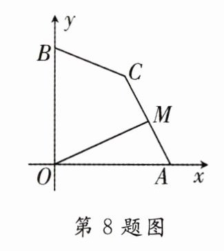 8. 如图,点A,B的坐标分别为A(6,0),B(0,6),C为坐标平面内一点,BC = 2$\sqrt{2}$,M为线段AC的中点,连接OM,当OM取最大值时,点M的坐标为_______.