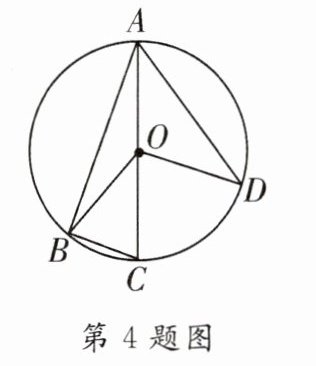 4. [2024·山东模拟]如图,已知△ABC内接于⊙O,AC为直径,半径OD//BC,连接OB,AD. 若∠AOB = 140°,则∠BAD的度数为( )