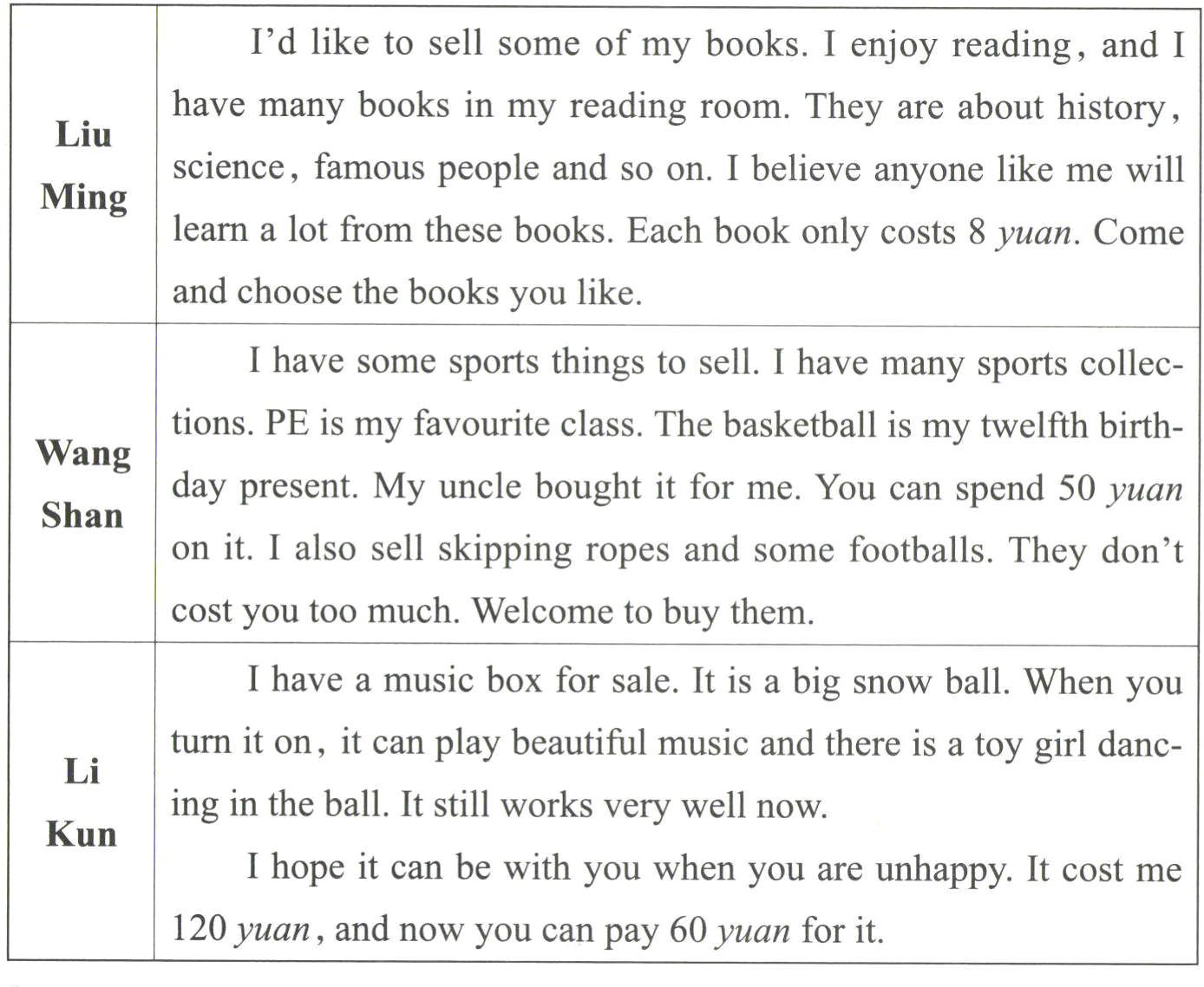 ( )62. If you like sports, you can buy ________ from Wang Shan.