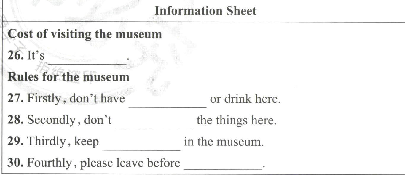 26. free 27. food 28. touch 29. quiet 30. 5/five