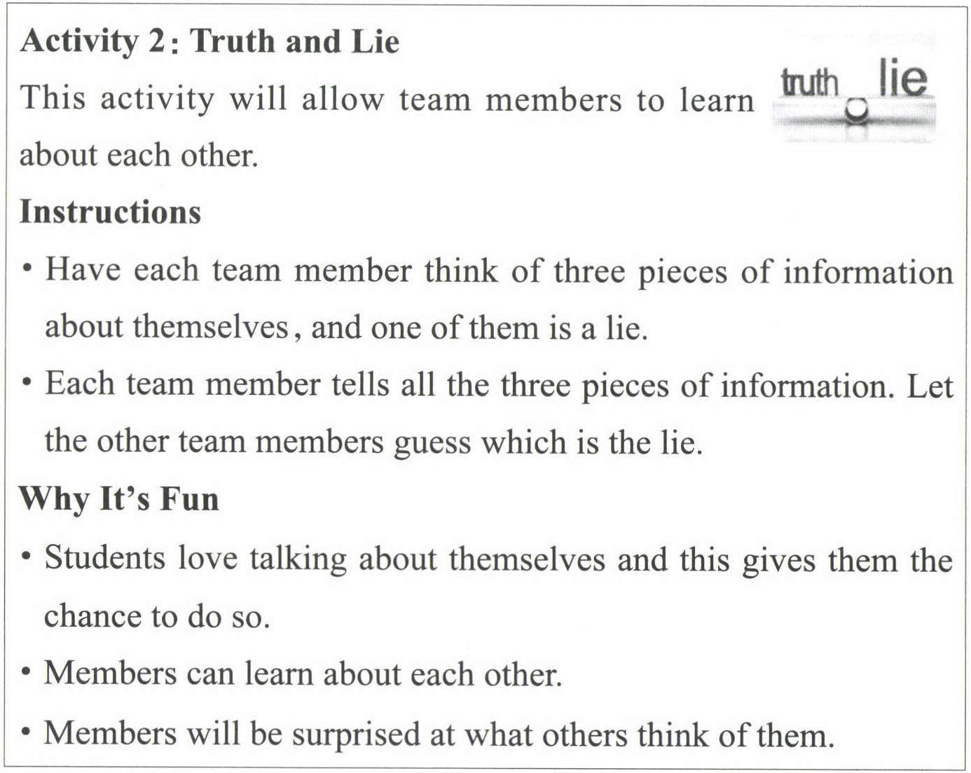 ( )65. It is fun to play Truth and Lie because team members can __________.