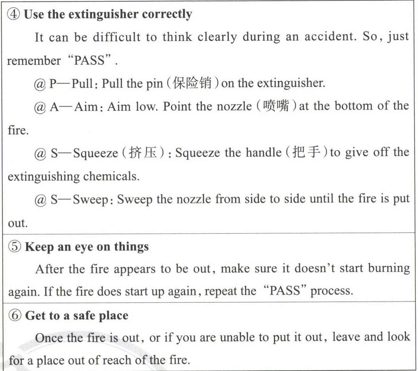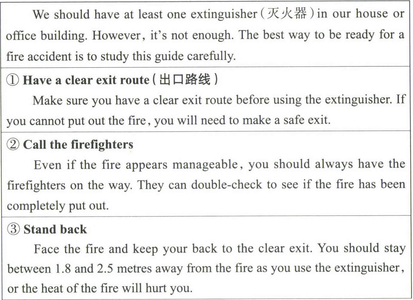 ( )56. Why should people stay away from the fire when using the extinguisher?