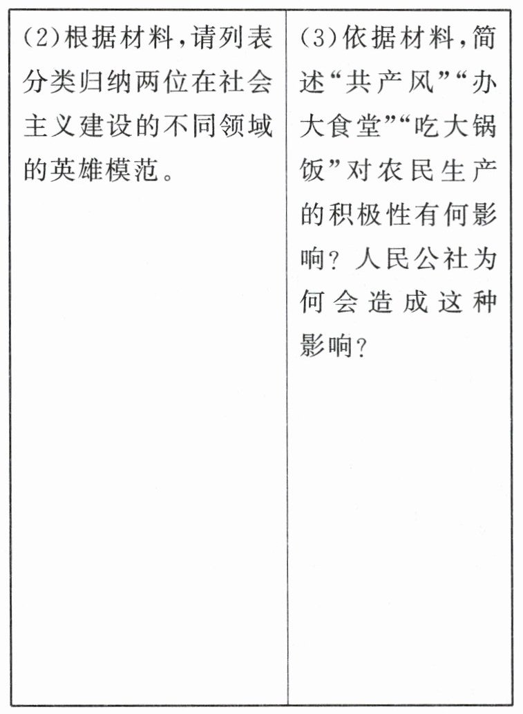 (2)领域:工业、军队、干部;模范人物:王进喜、雷锋、焦裕禄。