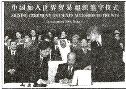 10. 如图是我国2001年加入世界贸易组织的真实写照。加入世界贸易组织说明我国积极加入到( )