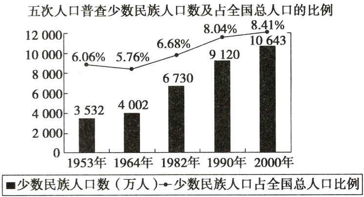 3.如图为新中国成立后少数民族人口变化统计图,这种变化与某项具有中国特色的民族制度密切相关。该制度为 ( )