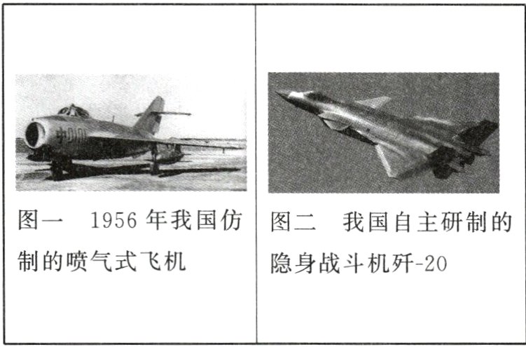 D 根据所学可知,仿制歼−5型歼击机、组建第二炮兵部队、建造核潜艇和航空母舰,武器装备中的科技含量依次增高,我国逐步走上了科技强军之路,故D符合题意。材料是在说武器装备逐步现代化,故A、B、C均不符合题意,排除。故选D。
