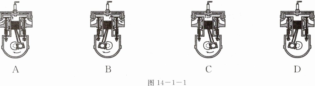 4. 如图14 - 1 - 1所示为汽油机工作各冲程的示意图,其中表示做功冲程的是( )