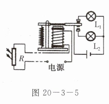 11. 如图20 - 3 - 5所示,用热敏电阻(受温度影响阻值会发生变化的电阻)和电磁继电器组成的火灾报警器的示意图,热敏电阻R受热后,其阻值会减小,将发生的变化是( )