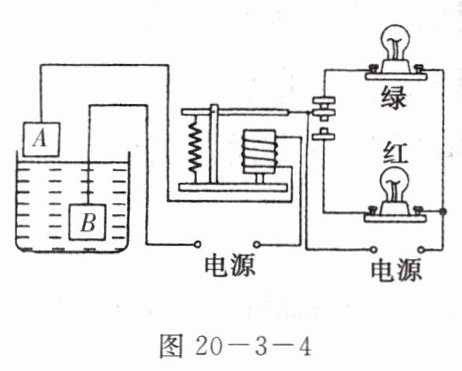 10. 如图20 - 3 - 4所示,是一种水位自动报警器的原理示意图,当水位达到金属块A时,出现的情况是( )