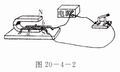 6. (多选)在图20 - 4 - 2所示的实验装置中,接通电源后,导体ab受力的作用产生运动,然后改变电流方向或磁感线方向,则 ( )