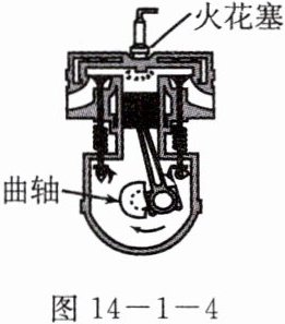 18. 汽油机是热机的一种,汽油在汽缸内燃烧时将_______能转化为_______能. 如图14 - 1 - 4所示是四冲程汽油机工作状态示意图,由图可以看出,此时它正处在_______冲程.